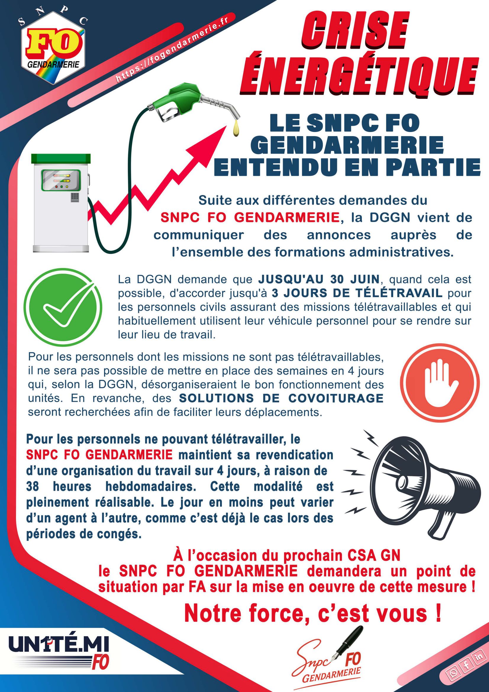 Crise énergétique : le SNPC FO GENDARMERIE entendu en partie…
